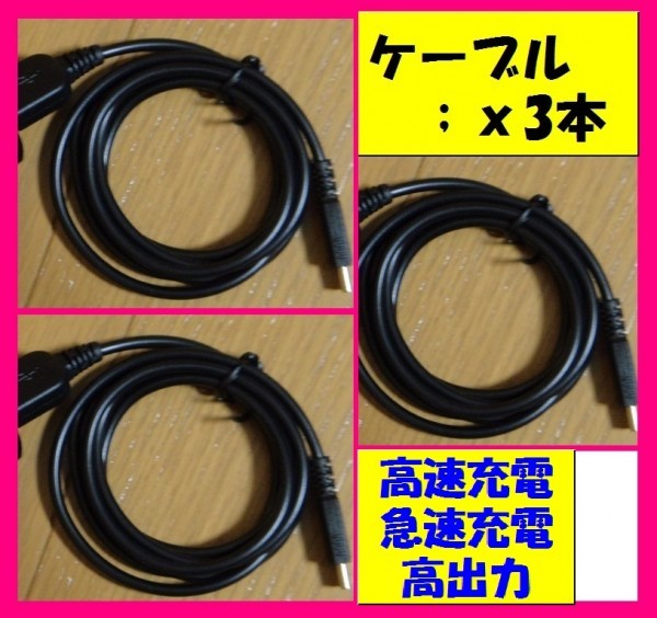 > 【送料無料:充電ケーブル:3本: (高速充電) 】 ★USB ケーブル:タイプB:スマホ:携帯:充電器:充電 黒 マイクロ:50cm or 1m