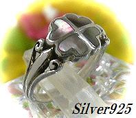 - シルバー925銀の四つ葉クローバー[シェル黒蝶貝] ピンキーリング/3号.5号.6号より
