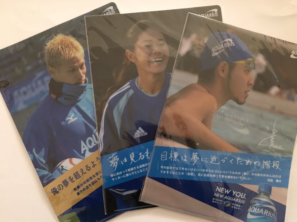 > 【非売品】★ AQUARIUS クリアファイル 合計3点セット ★ 本田圭佑 澤穂希 北島康介 ★ アクエリアス クリアホルダー ★