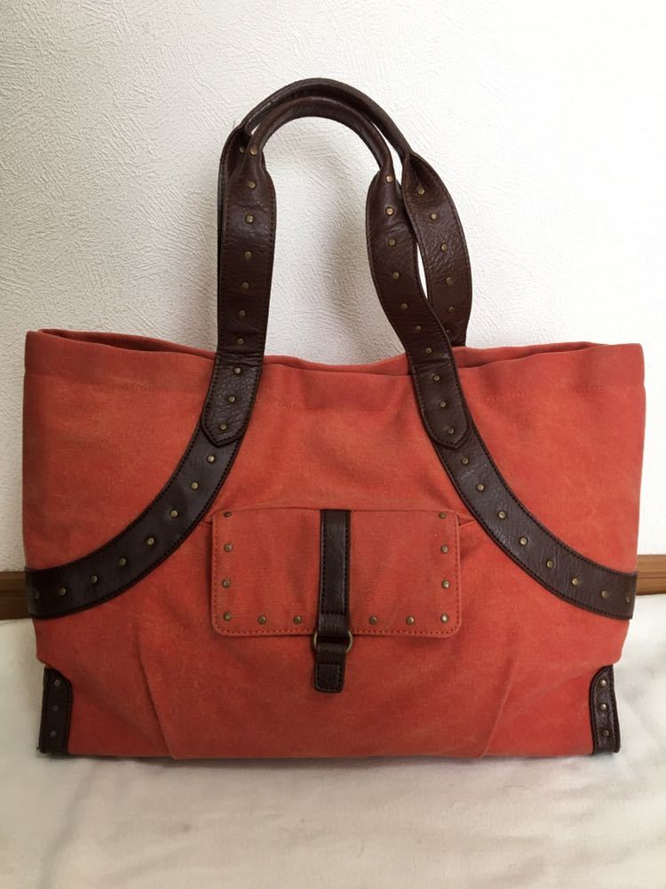 - 【激安】1er etage プルミエエタージュ 帆布トートバッグ オレンジ 底鋲有 お洒落 使えるサイズ 激安!