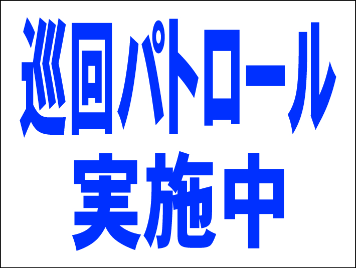 - シンプル看板 「巡回パトロール実施中」Mサイズ <マーク・英語表記・その他> 屋外可(約H45cmxW60cm)