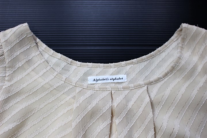 > 美品*Alphabet's alphabet*アルファベッツ アルファベット*薄ベージュ*シフォン*斜めストライプ柄*2重フレア半袖*バルーン*ワンピース*F