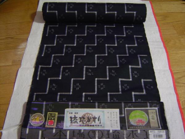 - 新品正絹反物★沖縄県伝統工芸★本場琉球かすり紬着尺★紺地です
