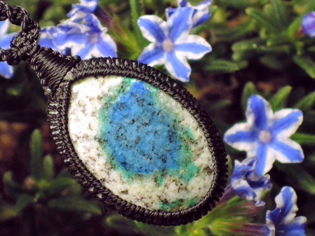 - ★K2ジャスパー★天然石アズライトグラナイト混合石★ネックレスペンダント★ハンドメイド黒マクラメ編みメンズレディースサイズ★kamesan