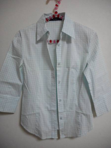 - CIPHER サイファー 七分袖シャツ 白&水色チェック柄9日本製