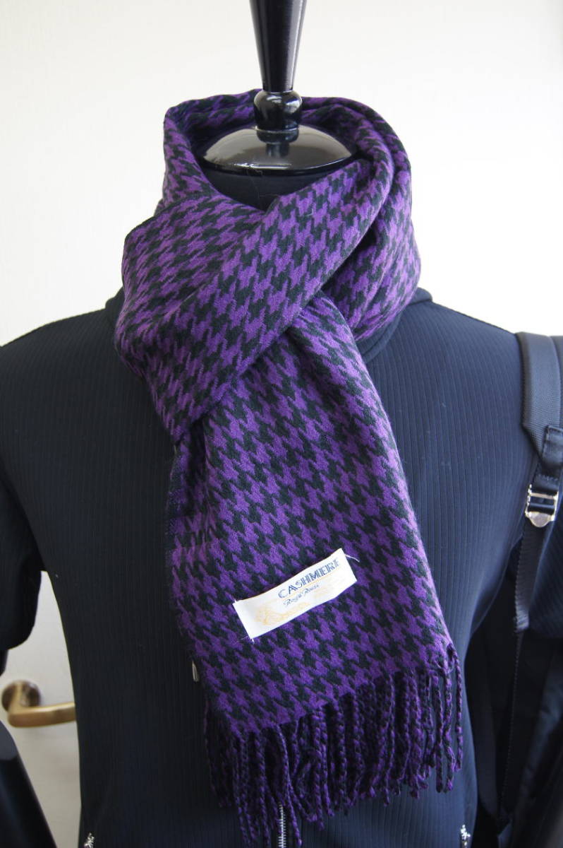 - カシミア100%英国”ストール”新作MID千鳥/ヴァイオレット〇*:..azu00men