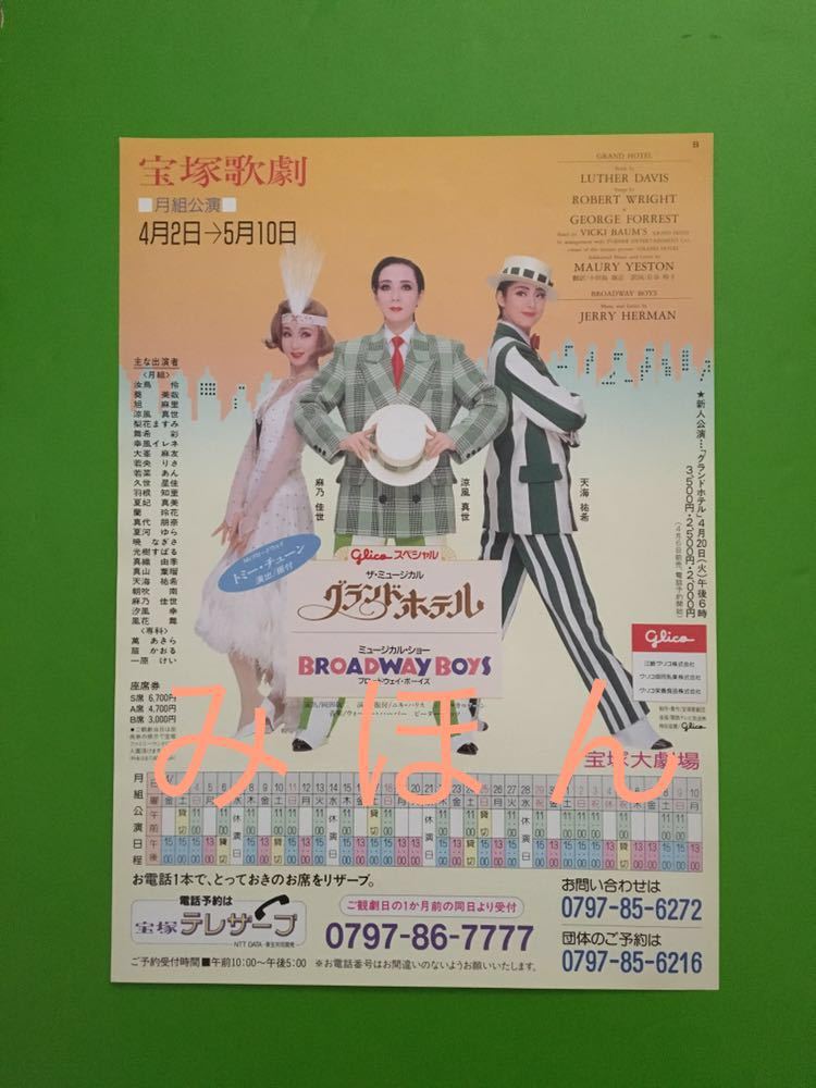 - ★ 宝塚歌劇 月組公演 チラシ ★ 涼風真世 麻乃佳世 天海祐希 ★ グランドホテル BROADWAY BOYS ★