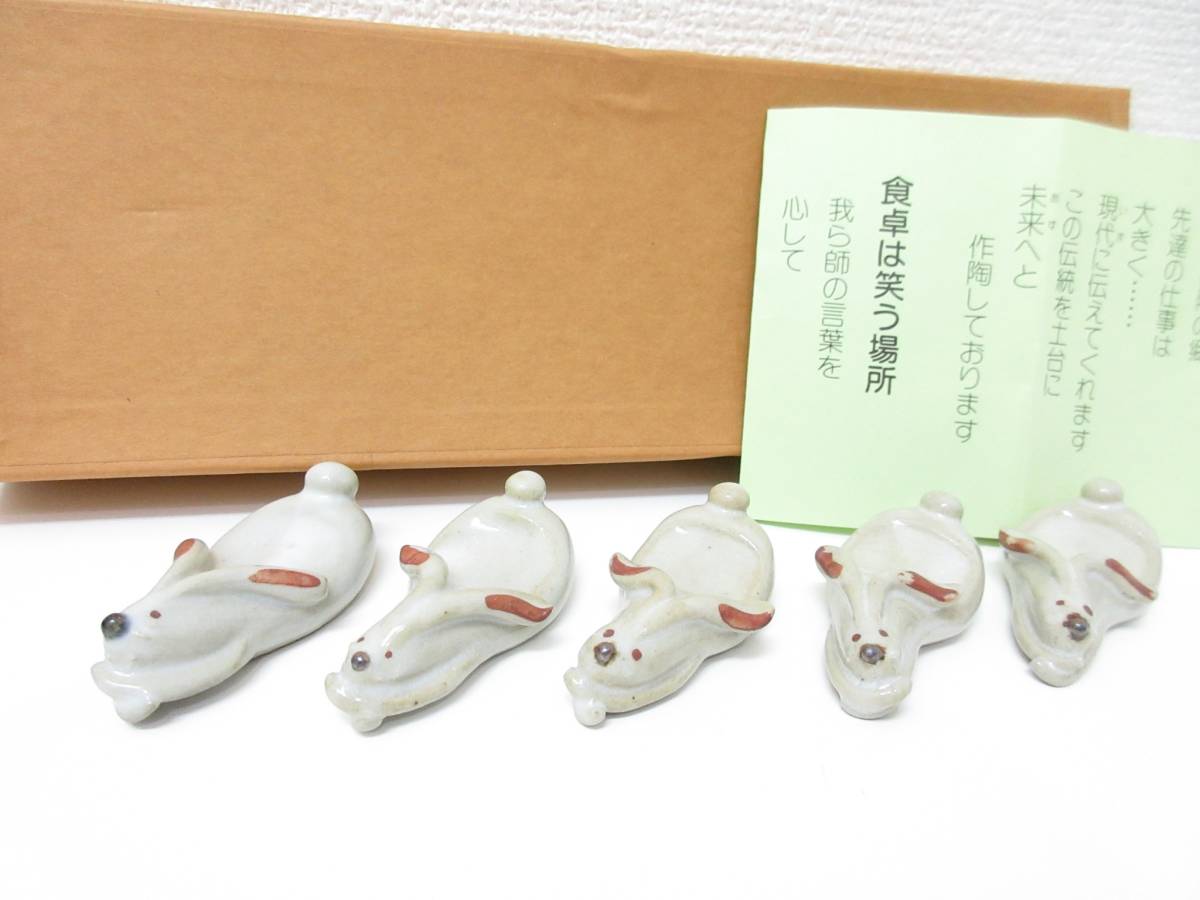 > 極美品■美濃焼 点窯 小栗正男 小栗広行 箸置き うさぎ 5個セット 管理1906 O-3