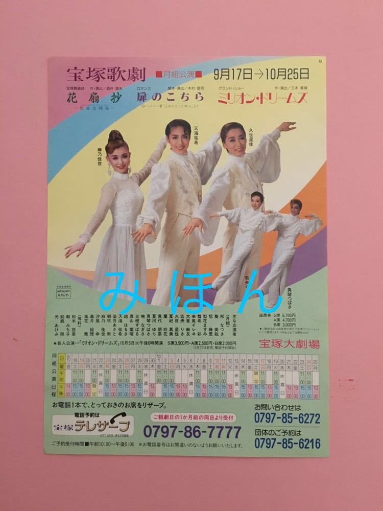 - ★ 宝塚歌劇 月組公演 チラシ ★天海祐希 麻乃佳世 久世星佳 若央りさ 真琴つばさ★花扇抄-花姿恋錦絵- 扉のこちら ミリオン・ドリームズ★