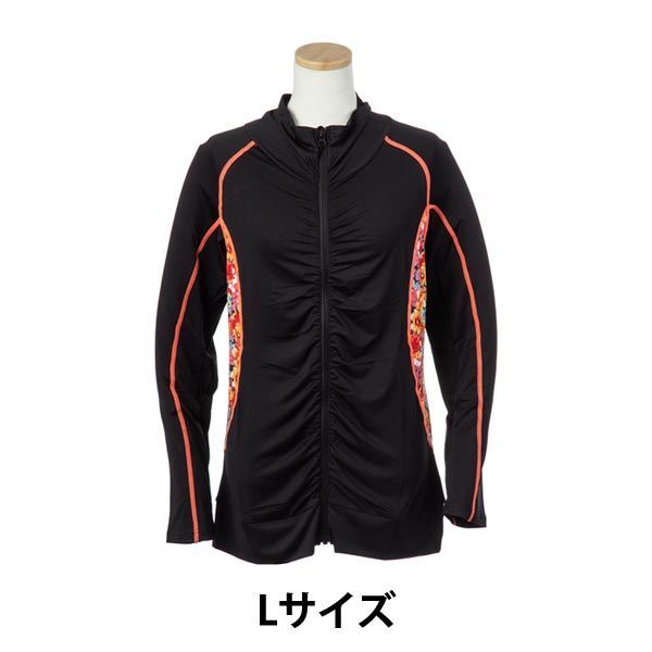 - コジット★ギャザーの効いた水着の上に着るウェア★気になる体型を隠してスッポリカバー!★クビレが目立つ細見えデザイン◆ブラック×花柄