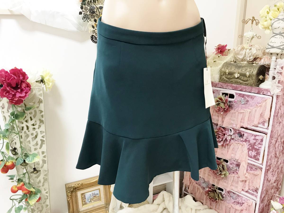 > レディス38/Mサイズ:ボンメルスリー【BON MERCERIE】ワールド◆日本製/ふんわり裾フレアー切替*スカート:グリーン 定価:6,900+税