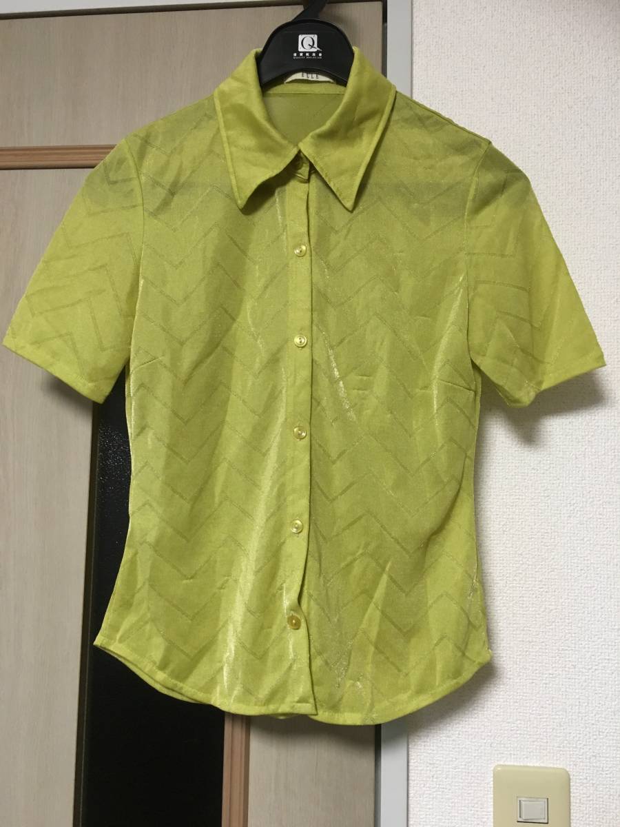 > ★エル ELLE ブラウス シャツ 半袖 トップス シースルー 黄緑 薄緑 グリーン 38 Mサイズ レディース イトキン