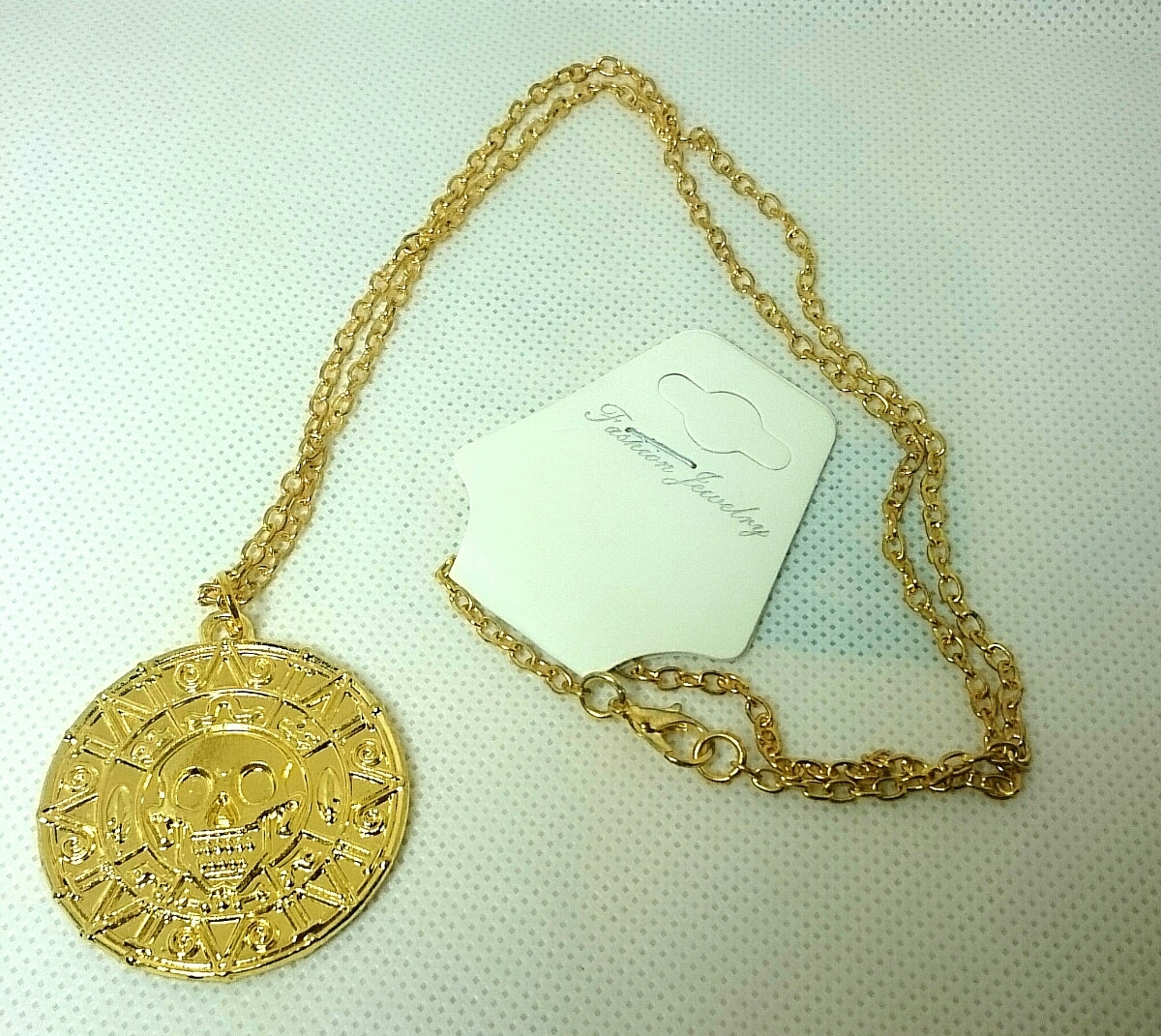 - 【ロック・パンク系ファッションに♪】新品・未使用 スカルシンボル ゴールドコーティング メダリオンネックレス ドクロモチーフ タグ付き