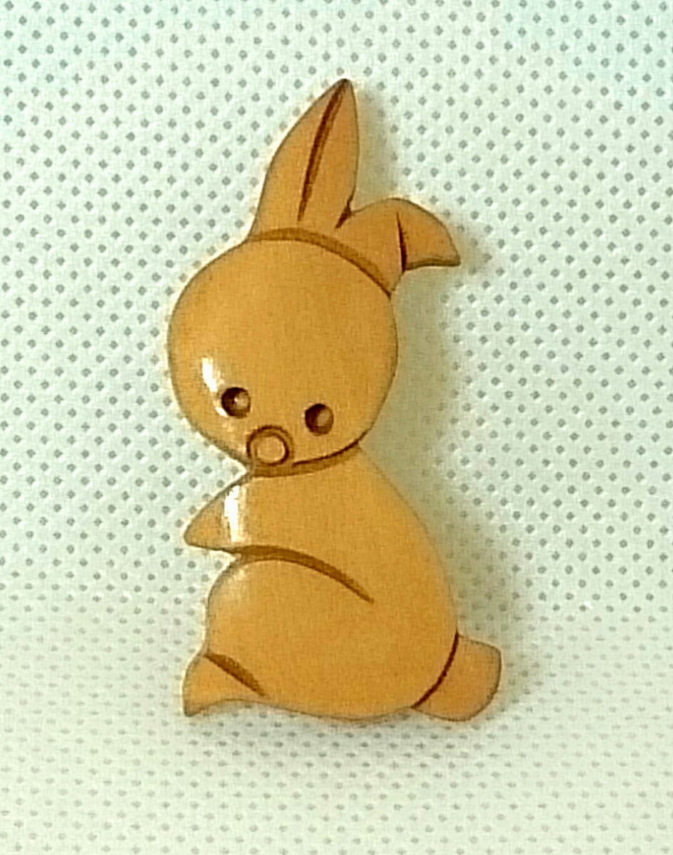 - 【おしゃれ♪】本物のヒノキの木使用! 和歌山県産ヒノキ使用 林業活性組合 手作り 手彫り まんまるウサギ 木製ブローチ 木工 木彫り