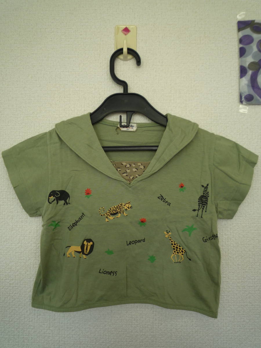 > ★nika nika 衿付き半袖 動物Tシャツ ぞう きりん しまうま 黄緑色(95)