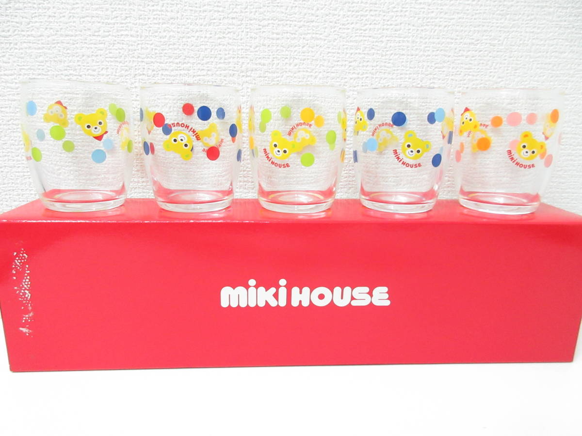 - 未使用品■MIKIHOUSE ミキハウス ガラスコップ ミニグラスセットプッチー くまちゃん 5客セット 箱入り 出産祝い 管理1908 M-15