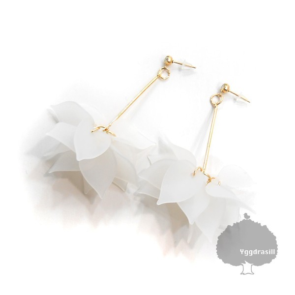- YGG★新品 フリンジ ロングピアス ペダル 花びら 白 クリアホワイト×ゴールド レディース 両耳用 セット フラワー 1ペア 結婚式 二次会