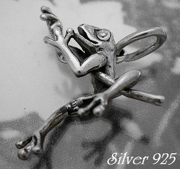 - シルバー925銀のカエル ハンギング フロッグ ペンダント ジルコニア付/シルバーアクセALL50%OFF