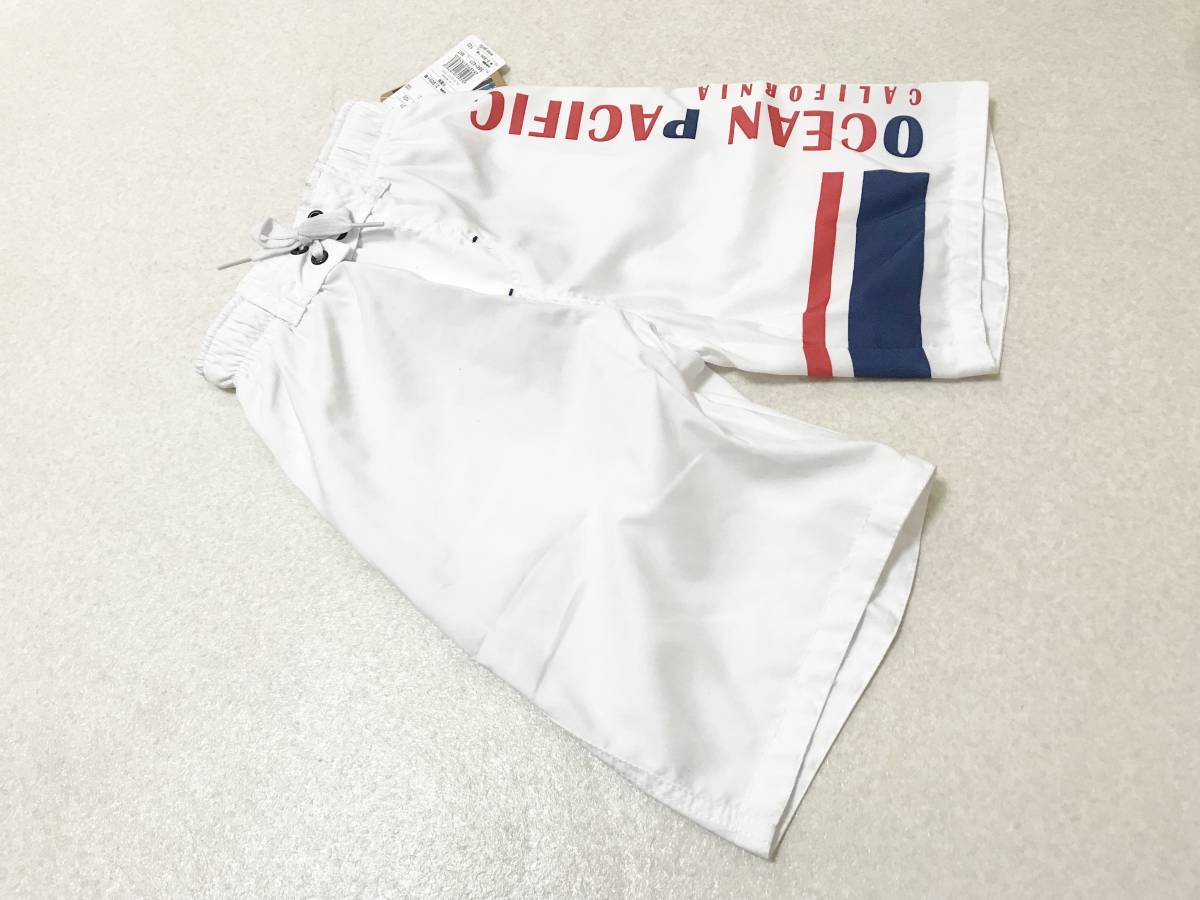 > 男の子供水着 100サイズ:オーシャンパシフィック【OP】海パン・キッズ水着・メッシュインナーパンツ付*サーフパンツ:白 定価:2,900+税