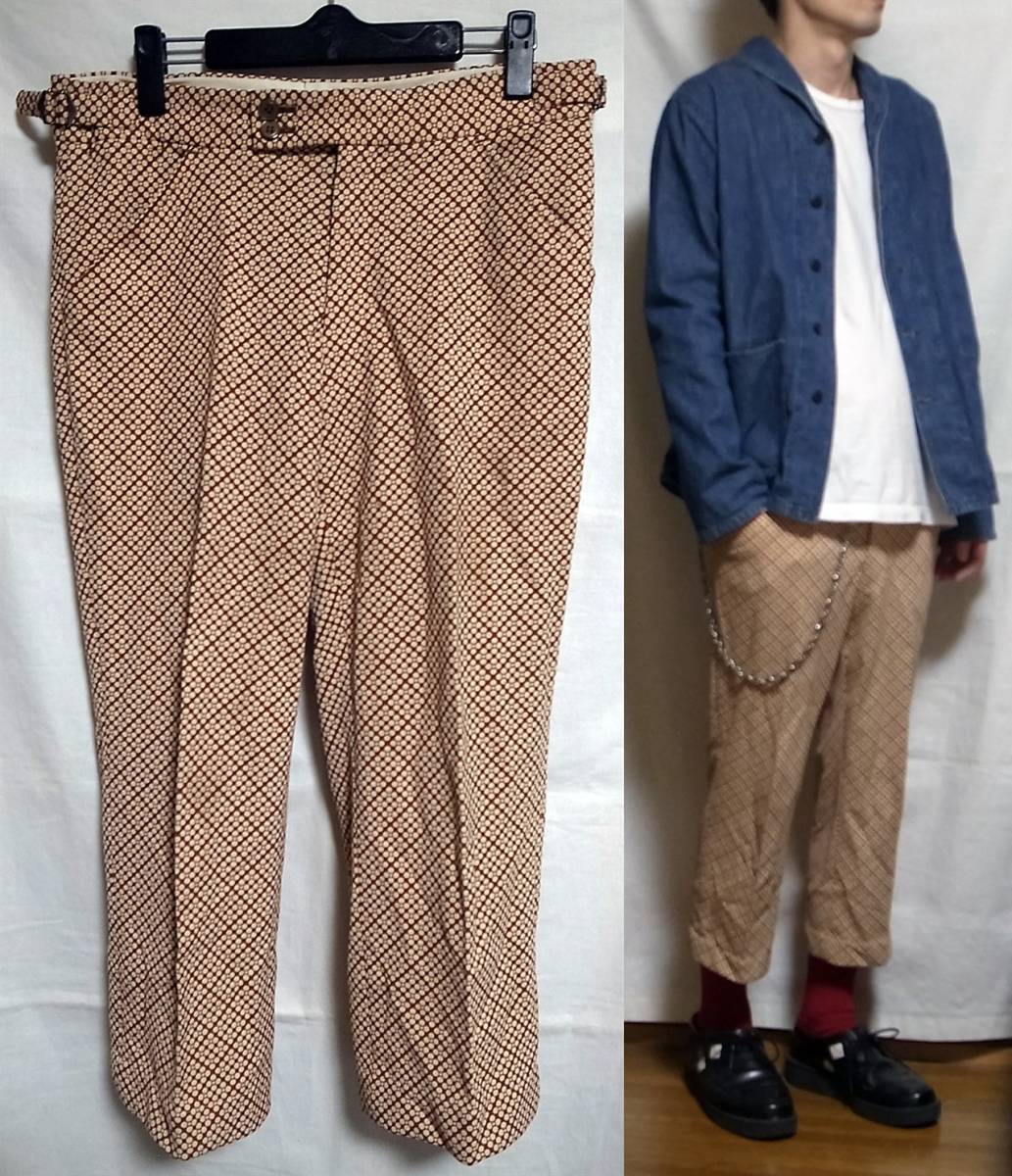 - 古着 レトロ 水玉 スラックス パンツ ブラウン ベージュ ウエスト幅37~41㎝位 メンズ