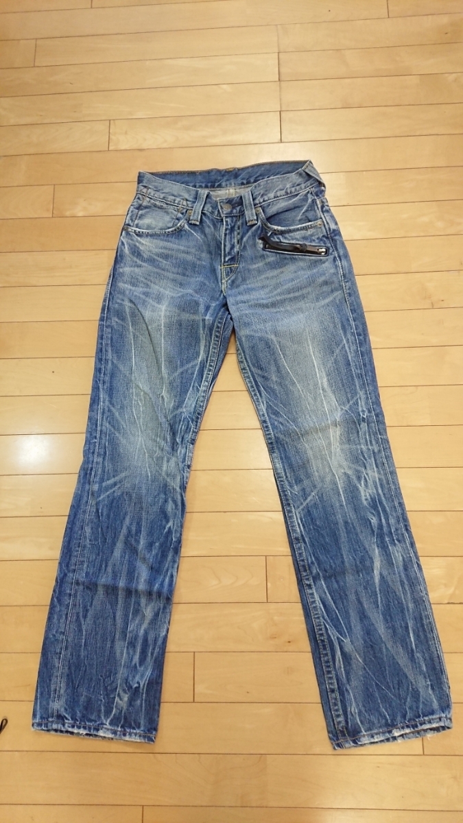- 【リユース専門☆ルート3号】リーバイス NE Classic lot502 人気のホワイト革パッチひび割れ加工 W30 ダメージ加工で雰囲気有。8ポケット