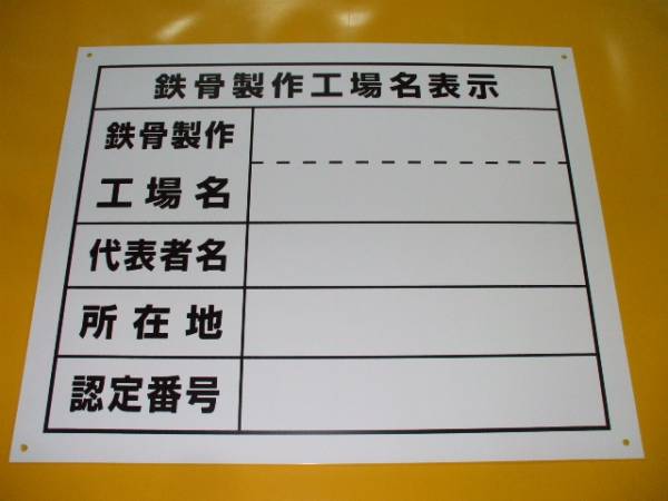 - 格安工場標識「鉄骨製作工場名表示」屋外可