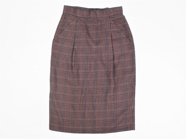 - SAVANNAH■ウールチェックペンシルスカート エンジ系チェック/12 M 70S 80S