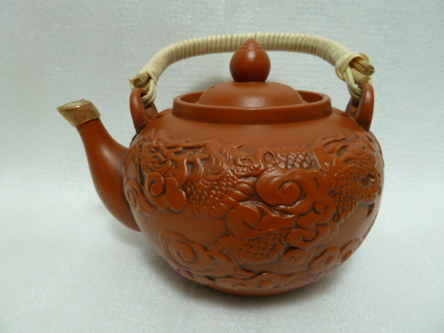 - 送料無料◆大型 朱泥 上手 急須◆ 龍紋図 在銘有◆ きゅうす◆