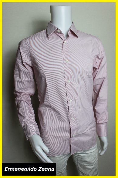 - 【送料無料】新品ジー・ゼニア(Z Zegna) ストレッチコットン長袖ピンストライプドレスシャツ(ピンク)サイズ39
