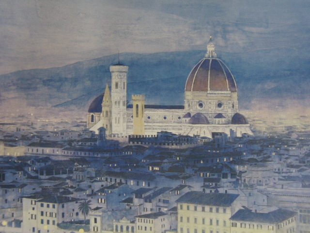 - 岡田眞治、【黄昏のフィレンツェ】、希少な額装用画集より、新品額装付、状態良好、送料込み