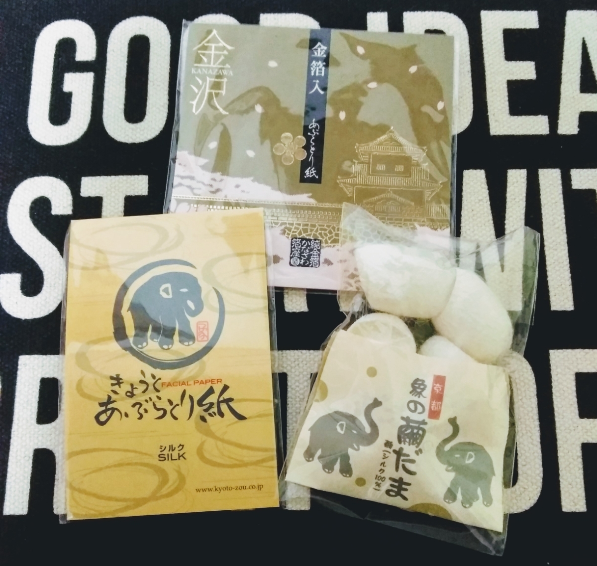 - 即決! 新品 金箔入り シルク 繭 100% 高級 あぶらとり紙 脂取り紙 繭だま 3点セット 京都 金沢 お土産 純金箔かなざわ箔座