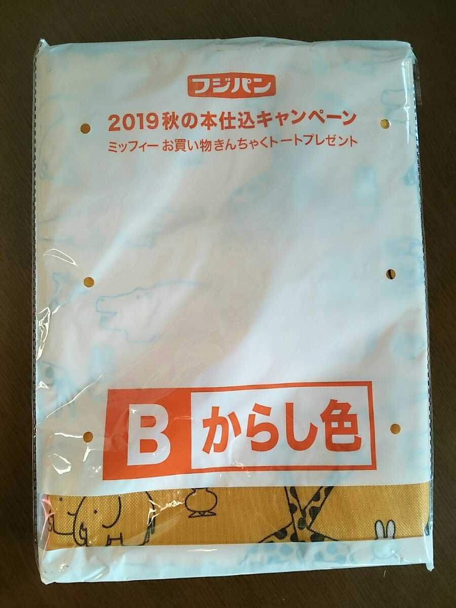 - 【未開封・非売品!】サファリ柄がおしゃれ♪ フジパン 2019 秋の本仕込みキャンペーン ミッフィー お買い物巾着 エコバッグ B:からし色