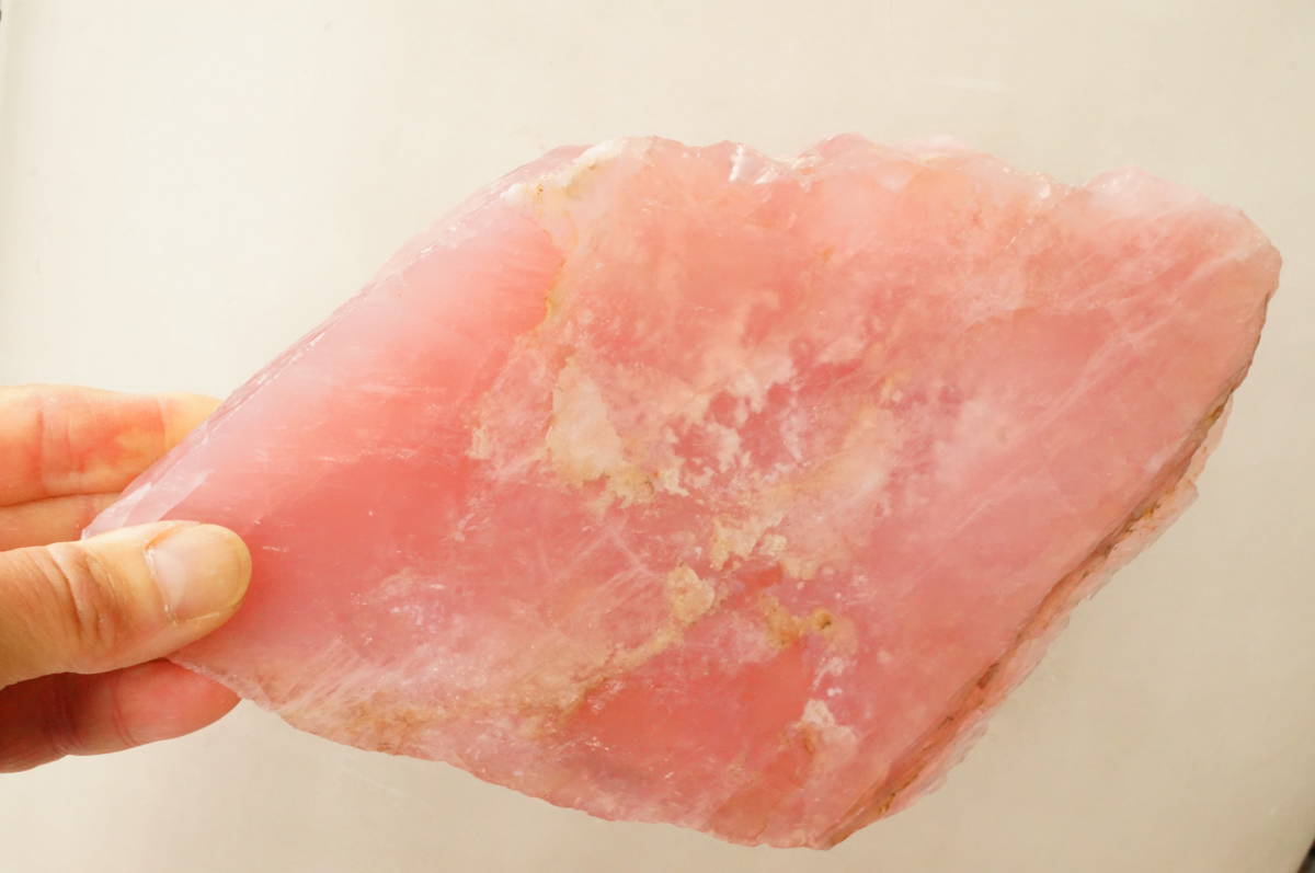 > 特大!希少!昔の在庫なので上質品!ピンクが綺麗な透明度のある上質ブラジル産ローズクォーツ(紅水晶)特大原石板/1.1Kg