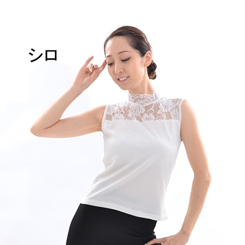 - 新品 即決¥1290 胸切り替えカットソー 薔薇レース白 定番 着やすい 社交ダンス お出かけ 上品に光る
