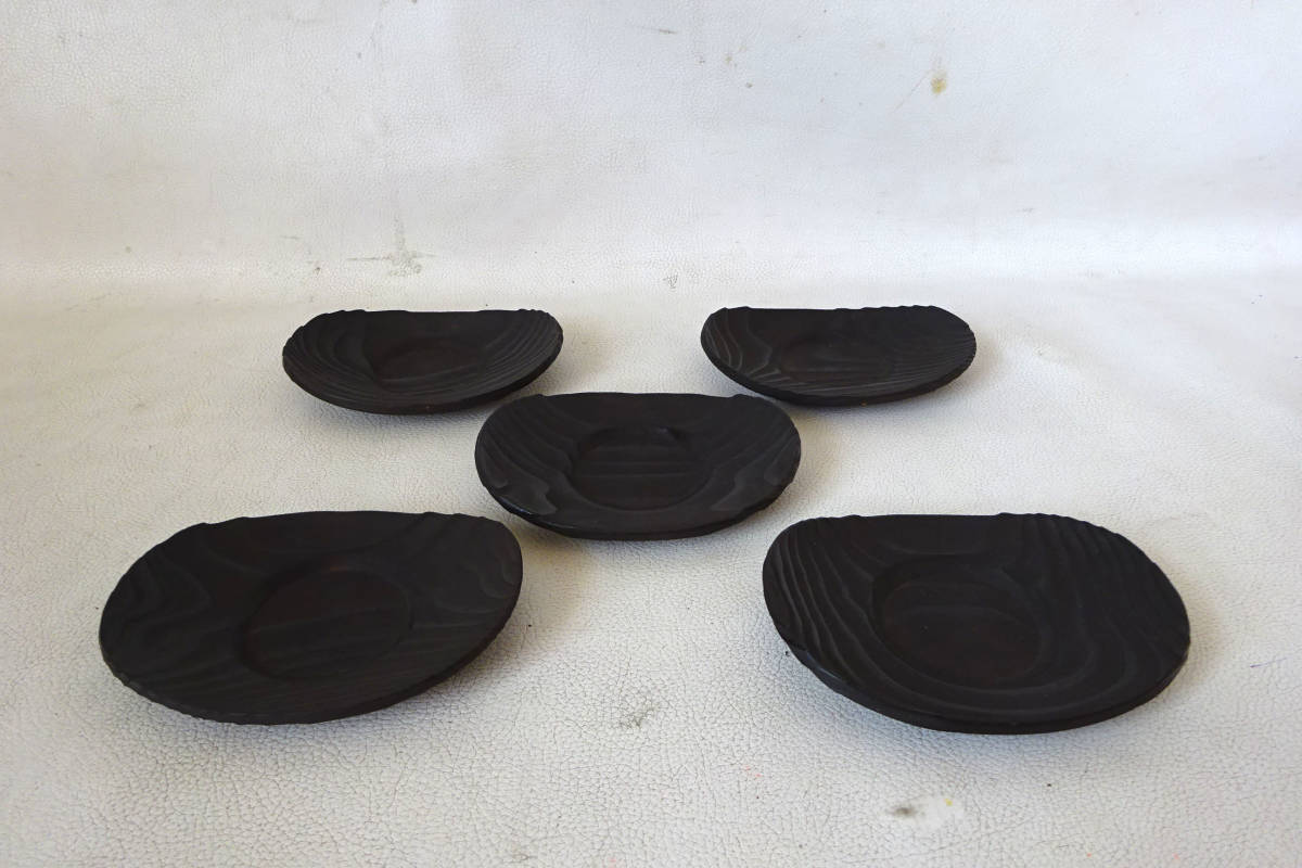 - やわらかな木のぬくもり/木製/ハンドメイド【手彫りの木目がきれいな茶托/五客セット】こげ茶色/自然・ナチュラル・和風/レトロ