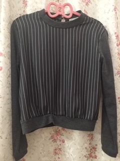 - グレー ストライプ トップス M L トレーナー カットソー 長袖