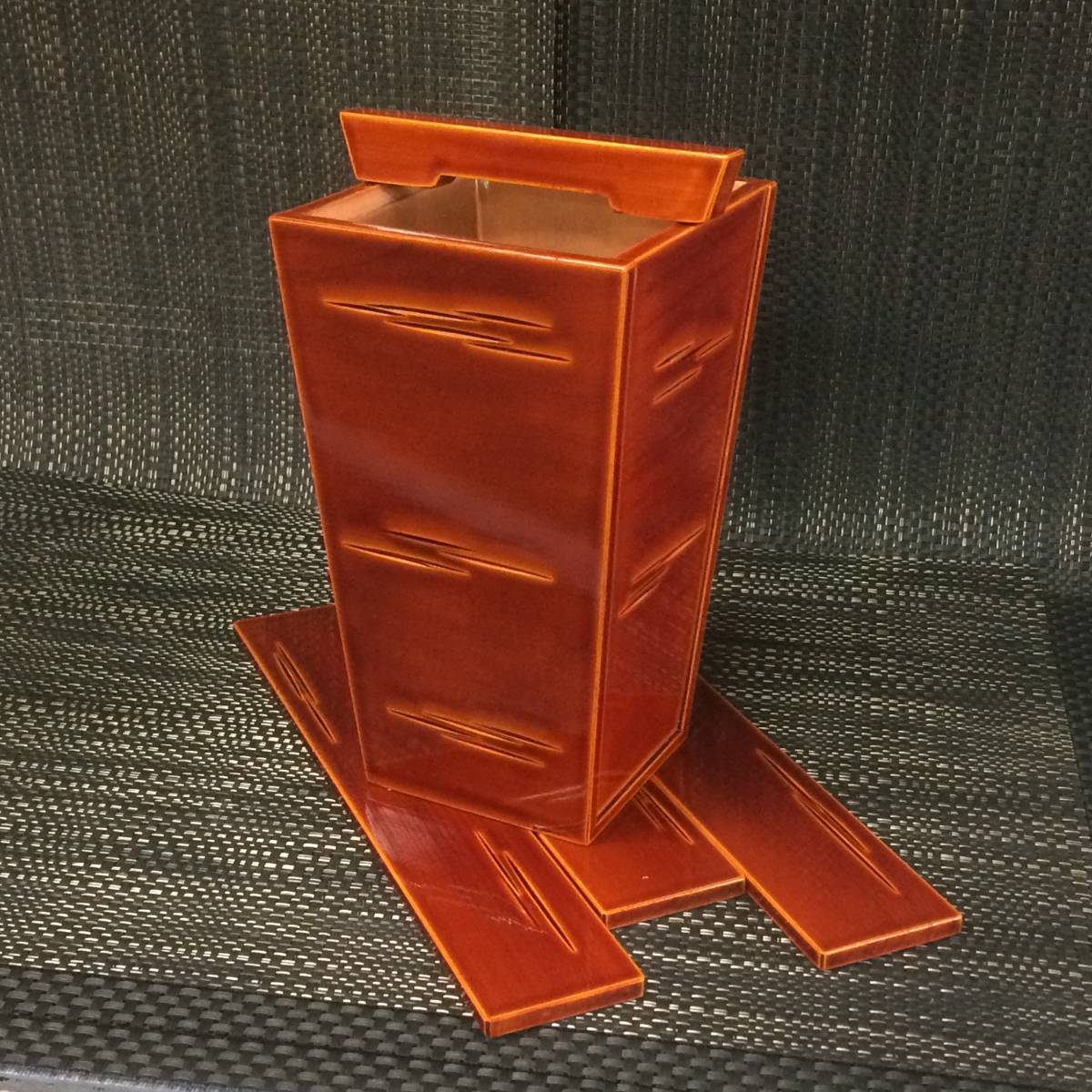 - 伝統工芸品 飛騨 春慶塗 手付花入れ 敷板付き 内貼り銅板 14cm 高さ28cm 奥行8cm 茶道具 華道 いけばな 花器 飛騨春慶塗