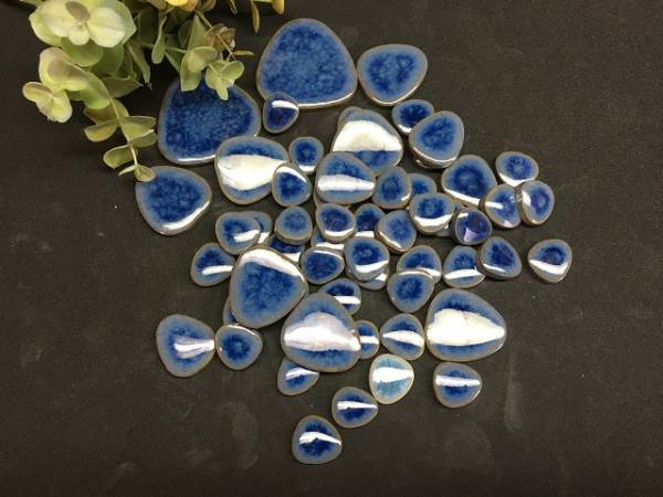 - ストーブ台やコースター作りに 玉石モザイクタイル 200g入り ブルーT-17 タイルバラ売り モザイクタイル教室材料