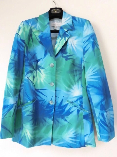 - ●美品 PRESTIGE /ELEGANCE/エレガンス/ドイツ製/青緑色リーフ柄/ジャケット/40 大きめサイズ