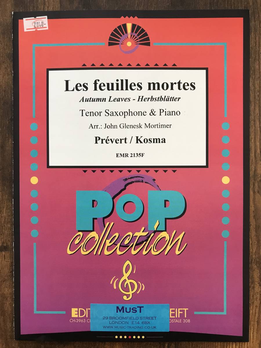 - テナーサクソフォン楽譜/枯葉/試聴可/送料無料/テナーサックス&ピアノ