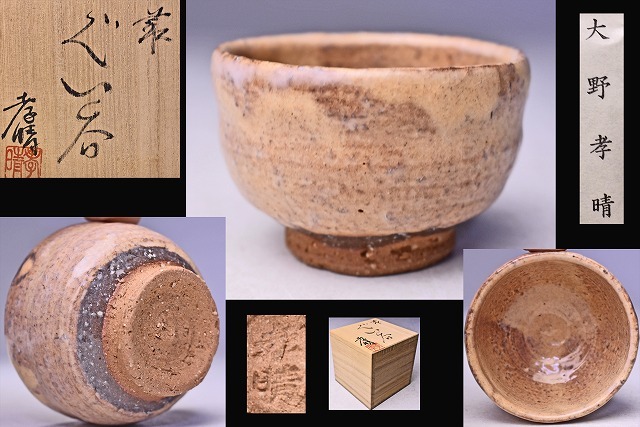 > 大野孝晴 ★ 萩ぐい呑 ★ 共箱栞 ★ 枇杷釉 ★ 萩粉引タイプ ★ 大野瑞峰 の子 ★ 景色良好 ★ 酒器 盃