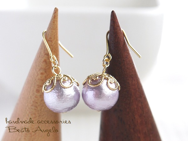> ◆+angelo+コットンパールの一粒ピアス(p-388)ラベンダー G 10mm 花座 シンプル チタン 樹脂 イヤリング