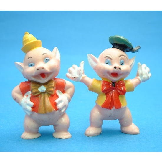 - ディズニー ファイファー・ピッグ&フィドラー・ピッグ 3匹の子ぶた PVCフィギュア ドイツHEIMO社 1960-1970年代