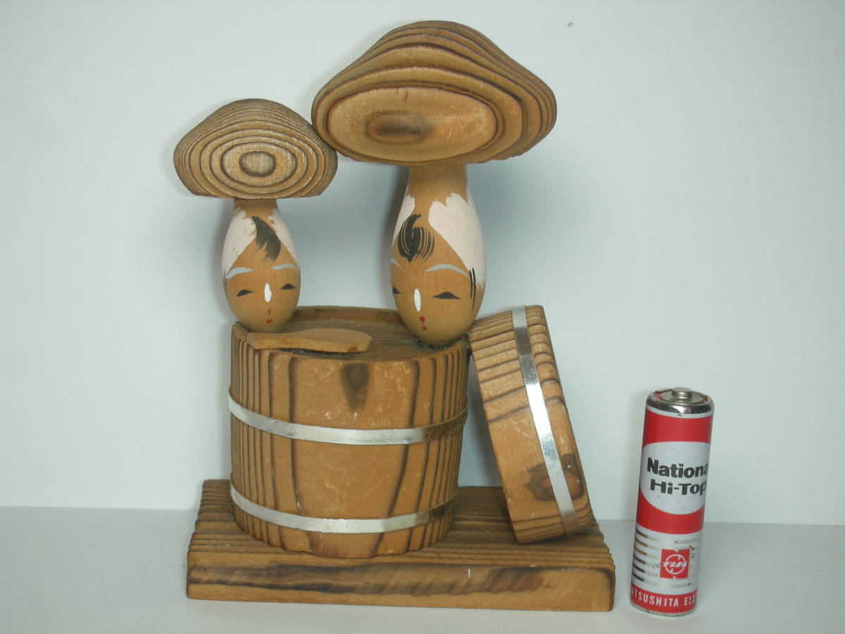 - 昭和レトロ きのこ キノコ 女性 婦人 おひつ型?お風呂 こけし はこね 箱根