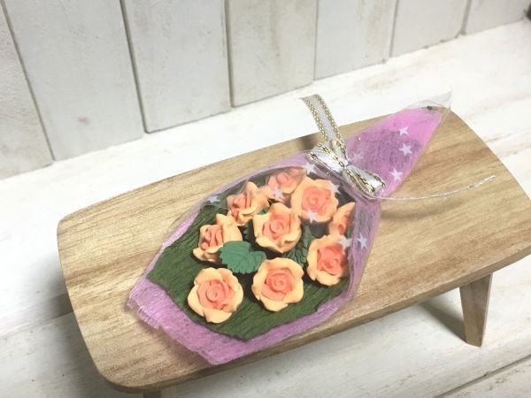 - z199◆ドールへの贈り物◆ ドールハウス 用 ミニチュア 花束 橙 薔薇 バラ 花 ギフト プレゼント アレンジ Doll House Blythe リーメント