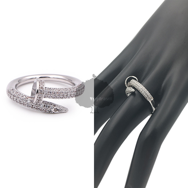 - YGG★ラインストーン入り 釘モチーフ リング 指輪 銀 シルバー 17.5号 男女兼用 アクセサリー