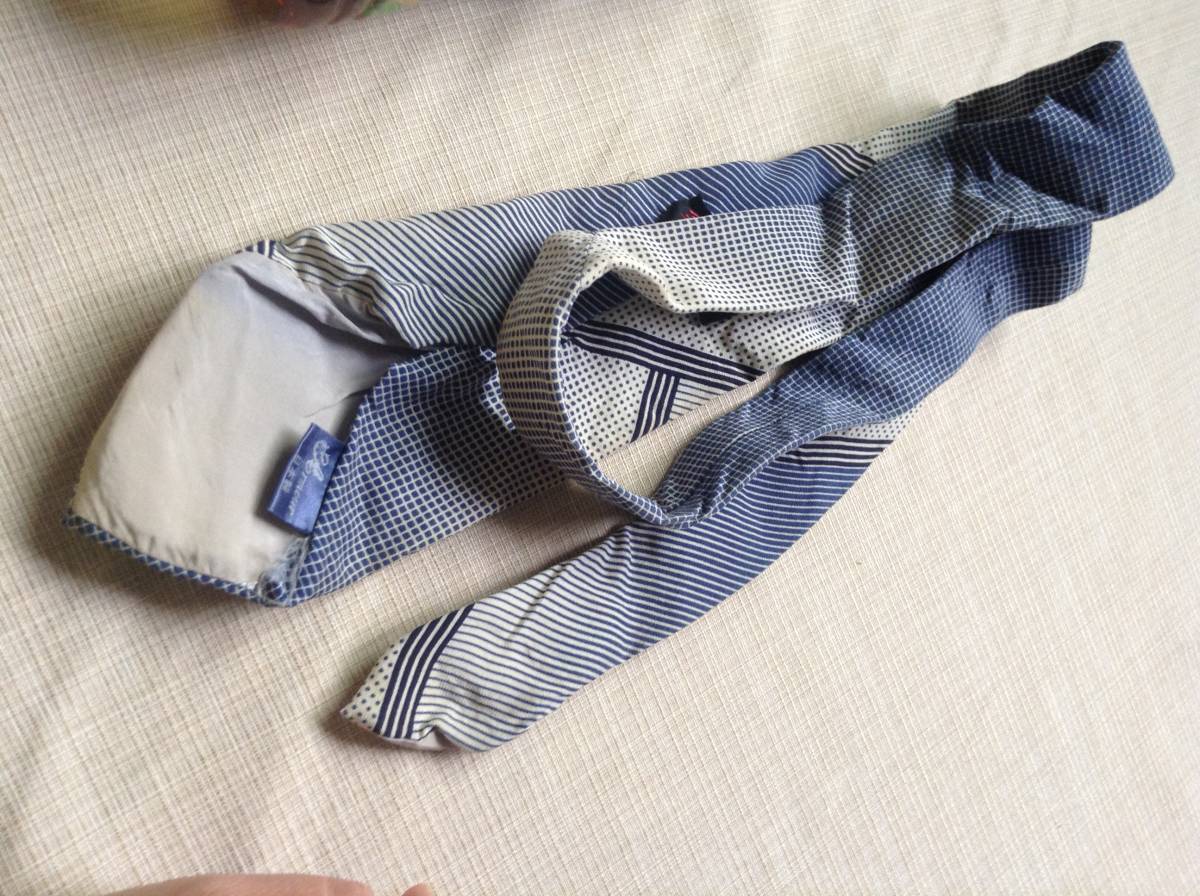 - ★レトロ★ネクタイ Armour 日本製 絹(シルク) 100% 青色ベースドット×ストライプ柄