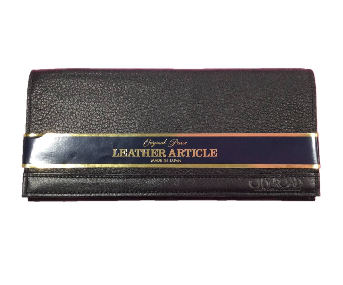 > @R【即決】◆CITY ROAD◆レザー(革)長財布 ブラック カード(4)コインファスナー(1)ポケット(3)ウォレット 大人 黒 シンプル