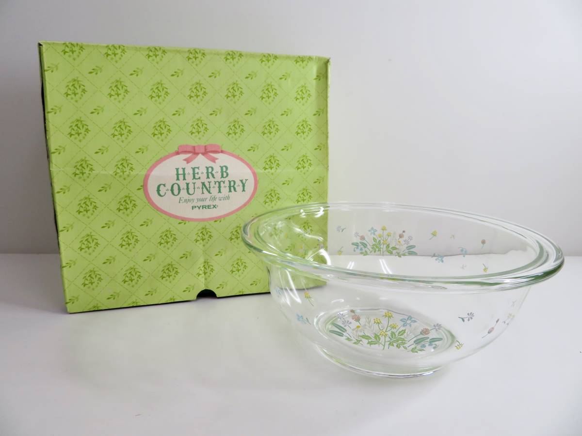 > ▲PYREX パイレックス 岩城硝子 サラダセット サラダボール 花柄 箱あり 未使用品 管理2005 S-8