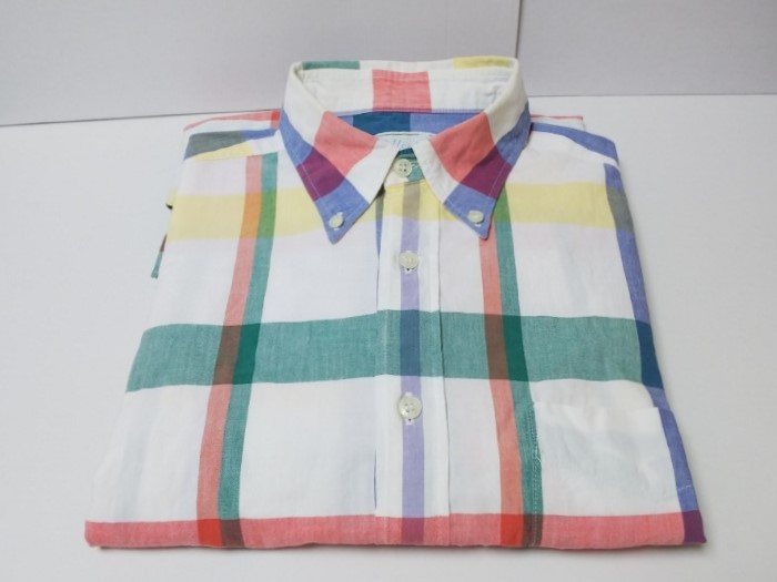 > 1972年のボタンダウン 町の洋品店のカジュアルシャツ 長袖 大柄 チェック 薄手 M・身幅約54cm※USED/ヴィンテージ/黄ばみ・薄汚れなどあり